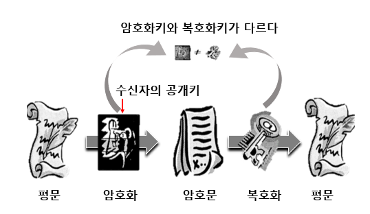 전통적인 암호와는 달리 키가 두 개 사용된다.