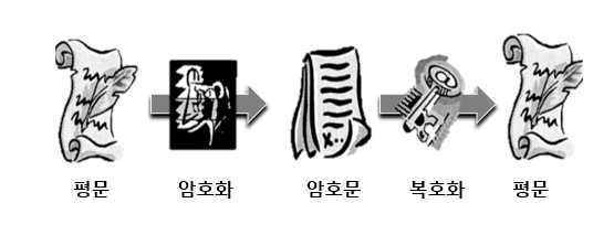 내용을 숨기기 위해 어떤 방법으로 평문[footnote] Plain Text 어떤 특별한 방법 없이 읽고 이해할 수 있는 데이터를 말한다.