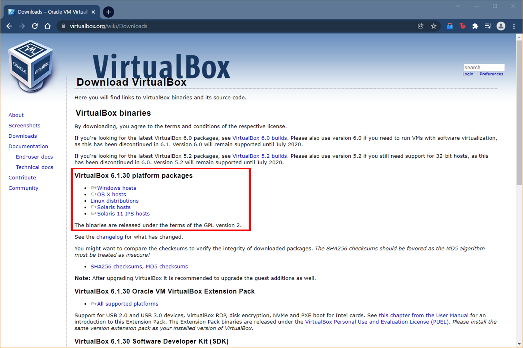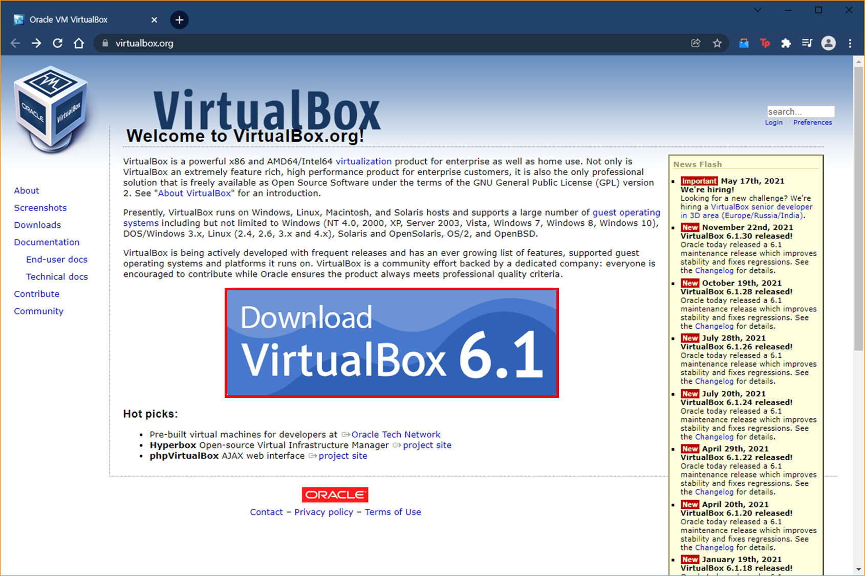 Welcome to VirtualBox.org! News Flash Important May 17th, 2021We're hiring! Looking for a new challenge? We're hiring a VirtualBox senior developer in 3D area (Europe/Russia/India). New November 22nd, 2021VirtualBox 6.1.30 released! Oracle today released a