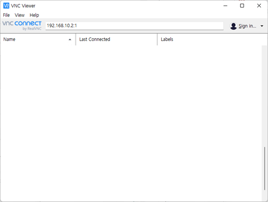 VNC Viewer를 사용하여 [IP Address]:[port number] 입력 후 접속
