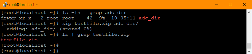 zip testfile.zip adc_dir/