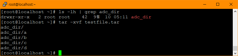 | tar 아카이브의 내용 확인하기 | tar -tvf file_name.tar |