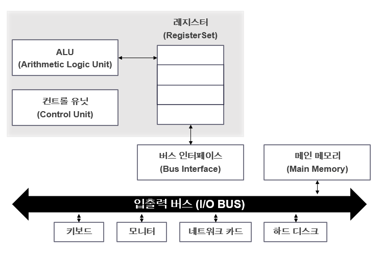 데이터를 주고 받기 위한 매개체이다. 버스 인터페이스(Bus Interface)는 외부의 입출력 버스(I/O Bus)와 연결된다. 즉, CPU의 외부와 연결되어 있으며 외부에서 들어오는 데이터를 받거나, 데이터를 보내는 역할을 담당한다. |