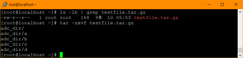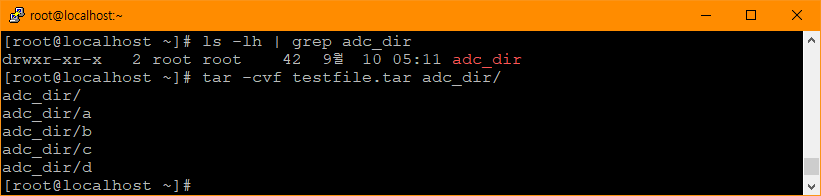 | tar 아카이브의 내용 확인하기 | tar -tvf file_name.tar |